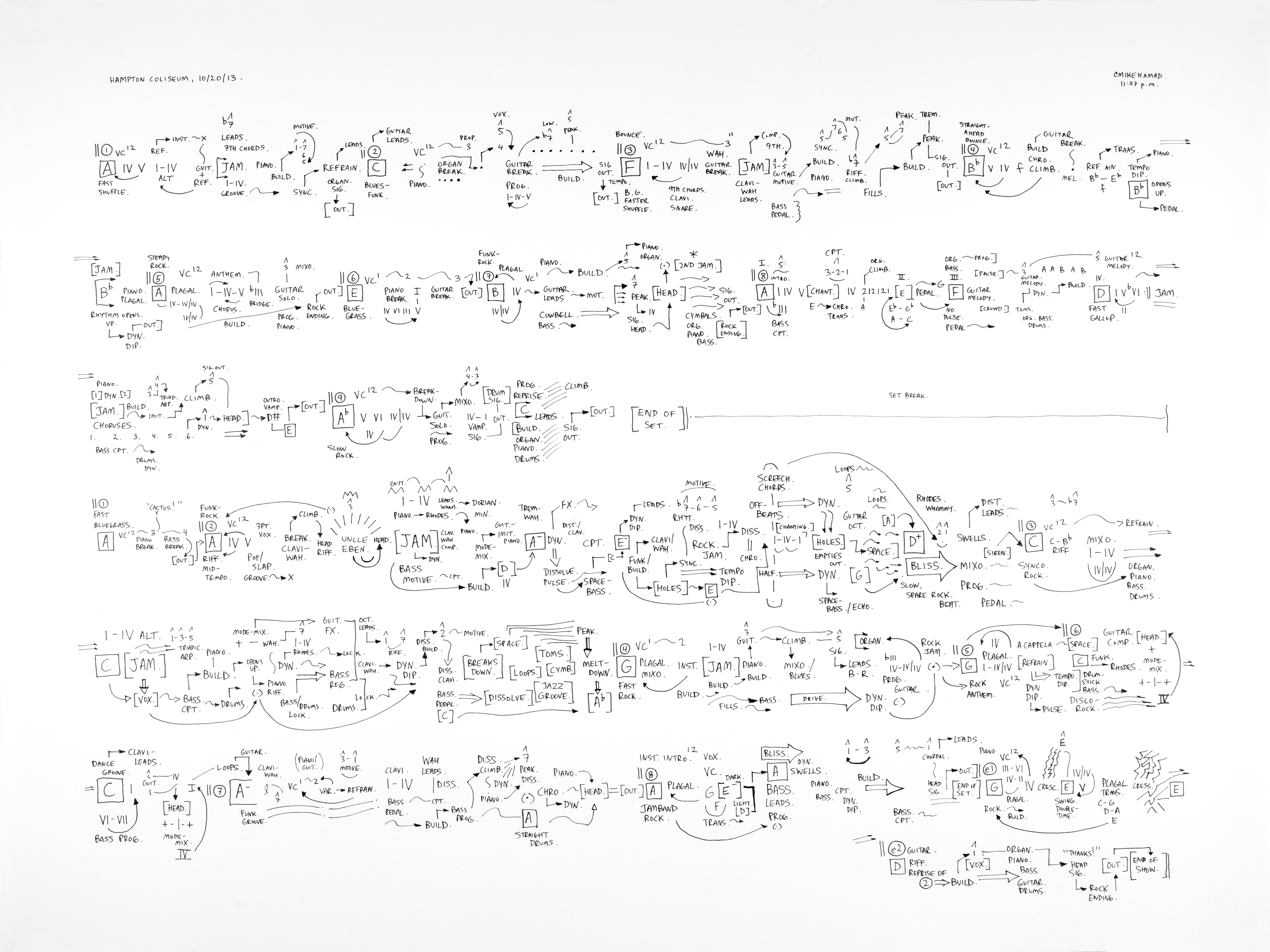 - Phishmaps reflect Hamad’s impression of what he hears in a jam at a specific moment. As an example, this image and the following one are maps of the same version of “Tweezer” from November 2, 1994. The artistic style and specific notated elements differ greatly.